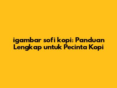Igambar Sofi Kopi: Panduan Lengkap Untuk Pecinta Kopi