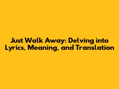 Hey guys! Ever get a song stuck in your head, and you just have to know what it means? Well, today, we're diving deep into the lyrics and translation of "Just Walk Away." This song, with its emotional depth and relatable themes, has resonated with many. We'll break down the song's meaning, explore the nuances of its lyrics, and provide you with a clear translation. Ready to uncover the story behind the music? Let's get started!