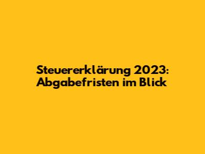 Steuererklärung 2023: Abgabefristen Im Blick